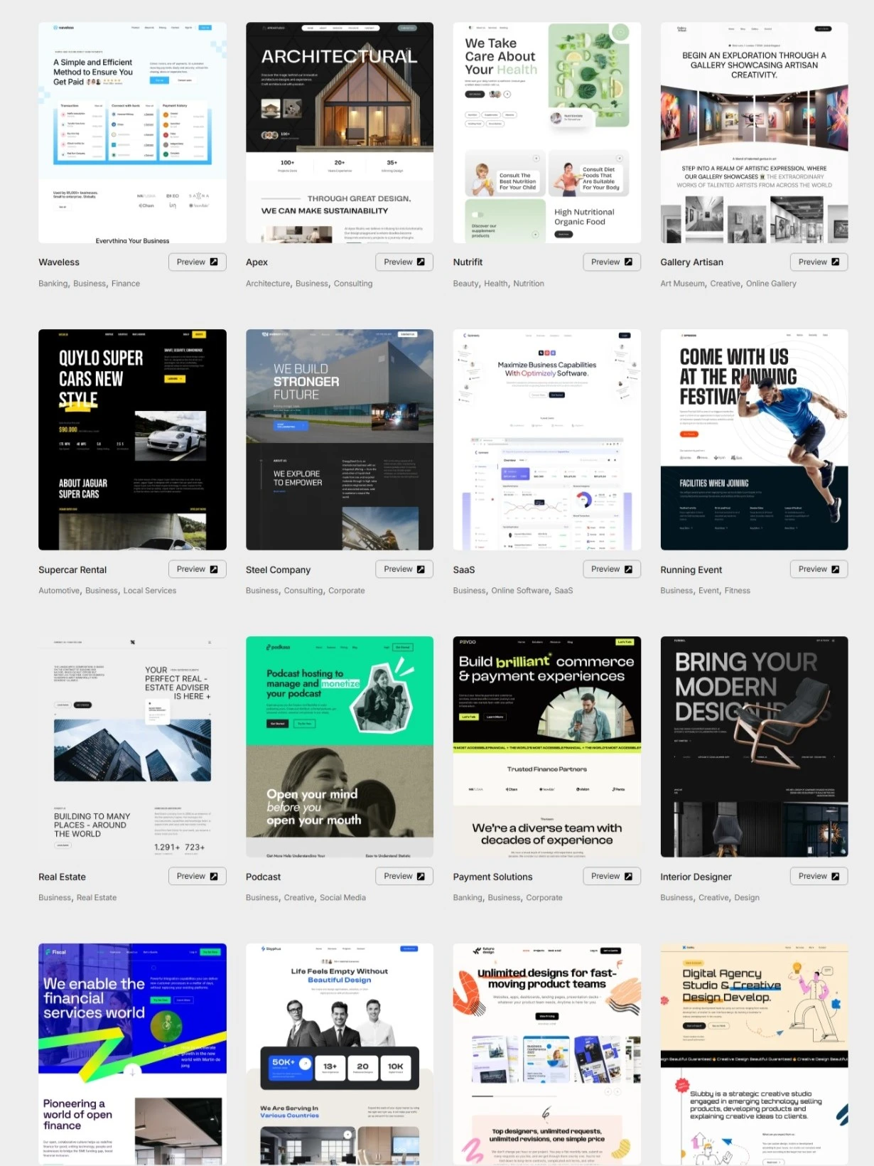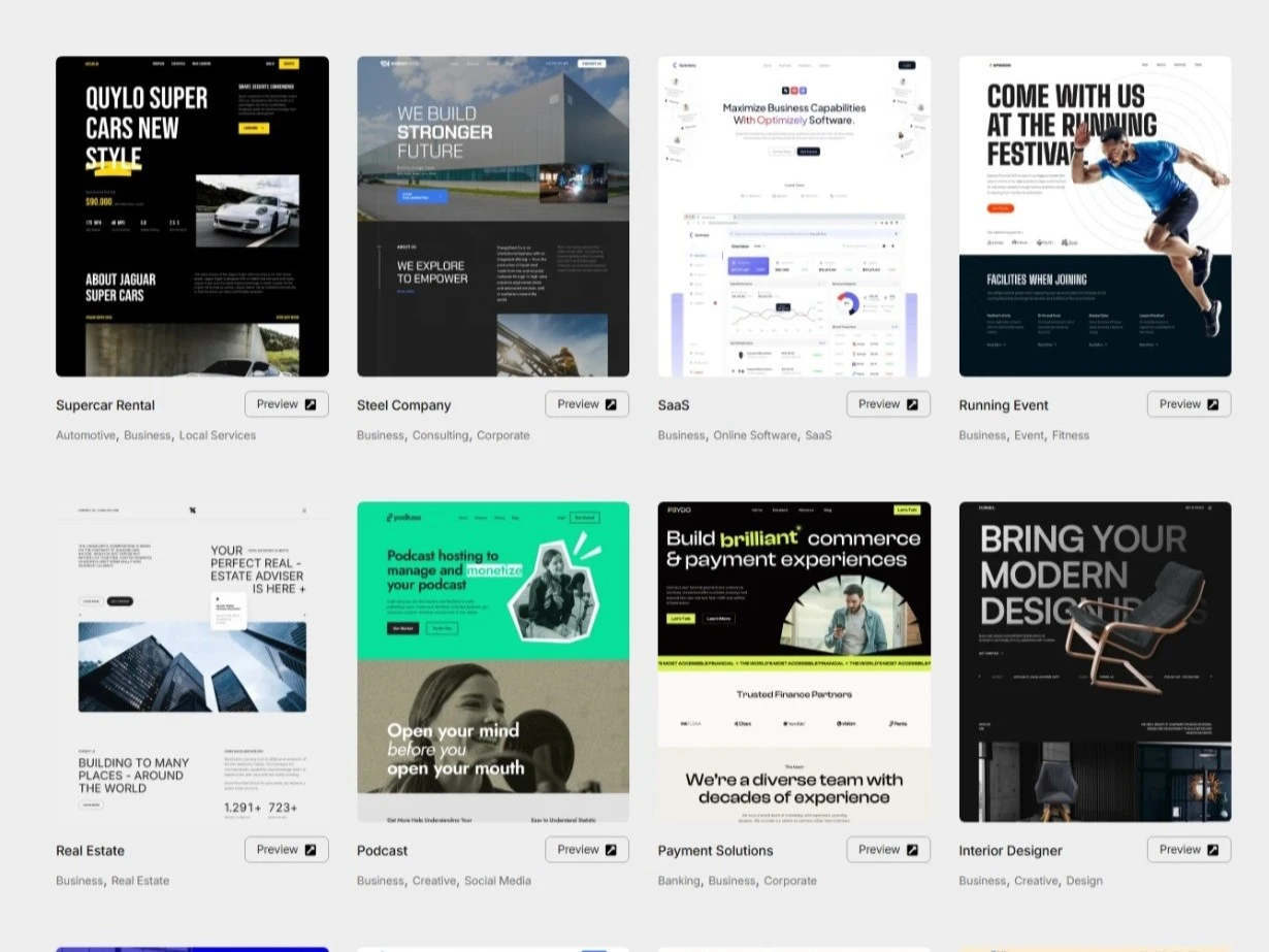 Ranging from business, local services, marketing, legal, consulting, portfolio websites, you get to choose from our growing varieties of professionally crafted website templates.